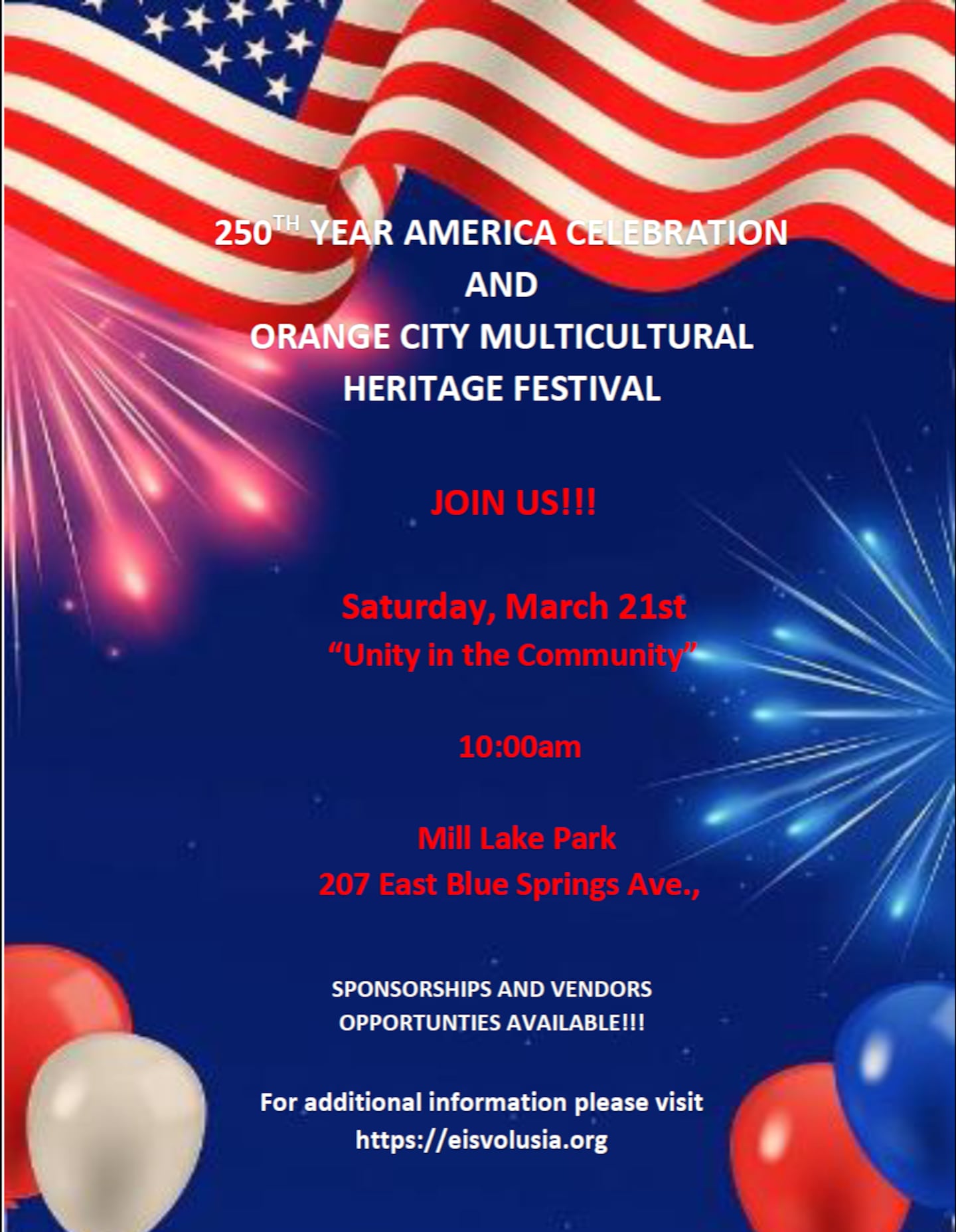 Orange City Multicultural Heritage Festival Sat, Mar 21 10am-Mill Lake Park 207 East Blue Springs Ave.