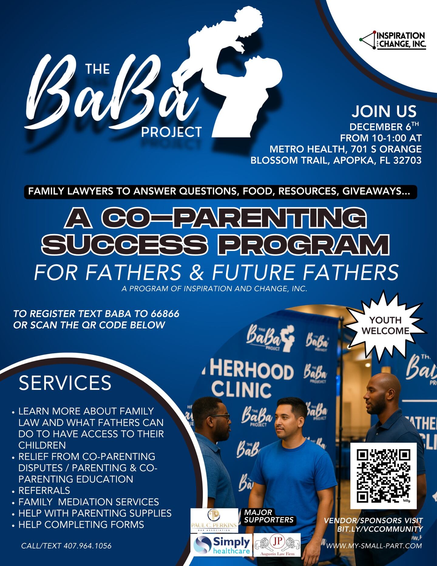 The BaBa Project provides resource information for fathers and future fathers, Sat, Dec 6th 10am-1pm at Metro Health, 701 S. Orange Blossom Trail, Apopka.