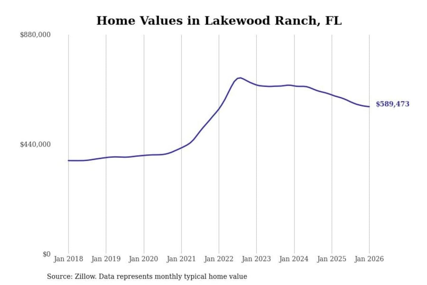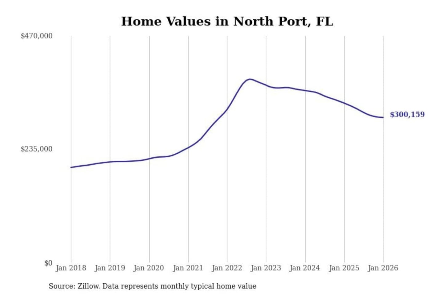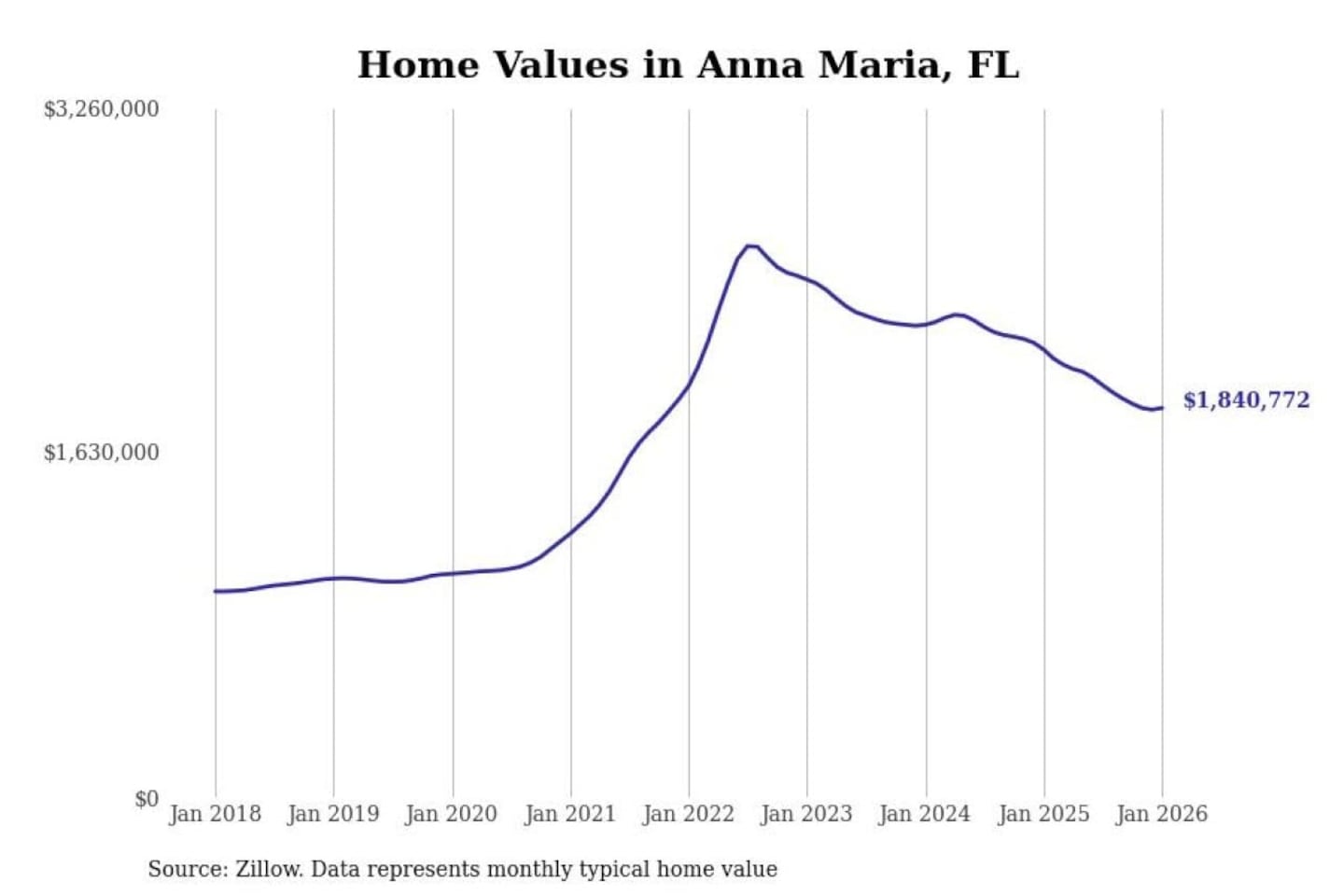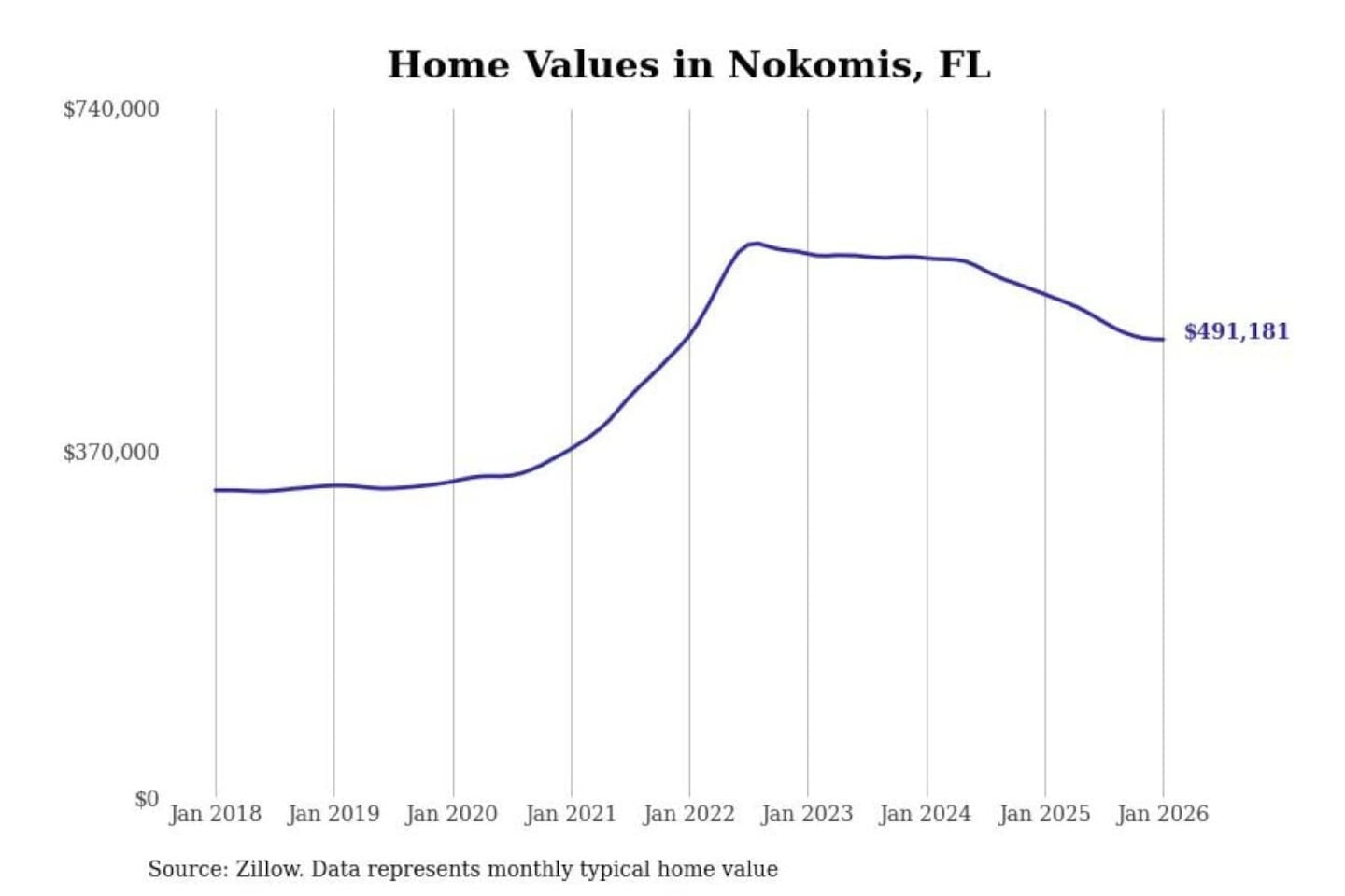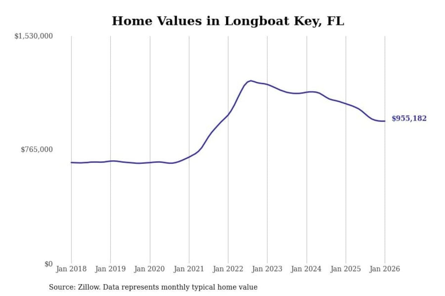 Stacker compiled a list of cities with the most expensive homes in the North Port-Sarasota-Bradenton, FL metro area using data from Zillow. Charts show the monthly typical home value since January 2018.