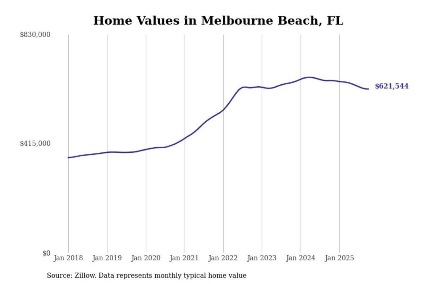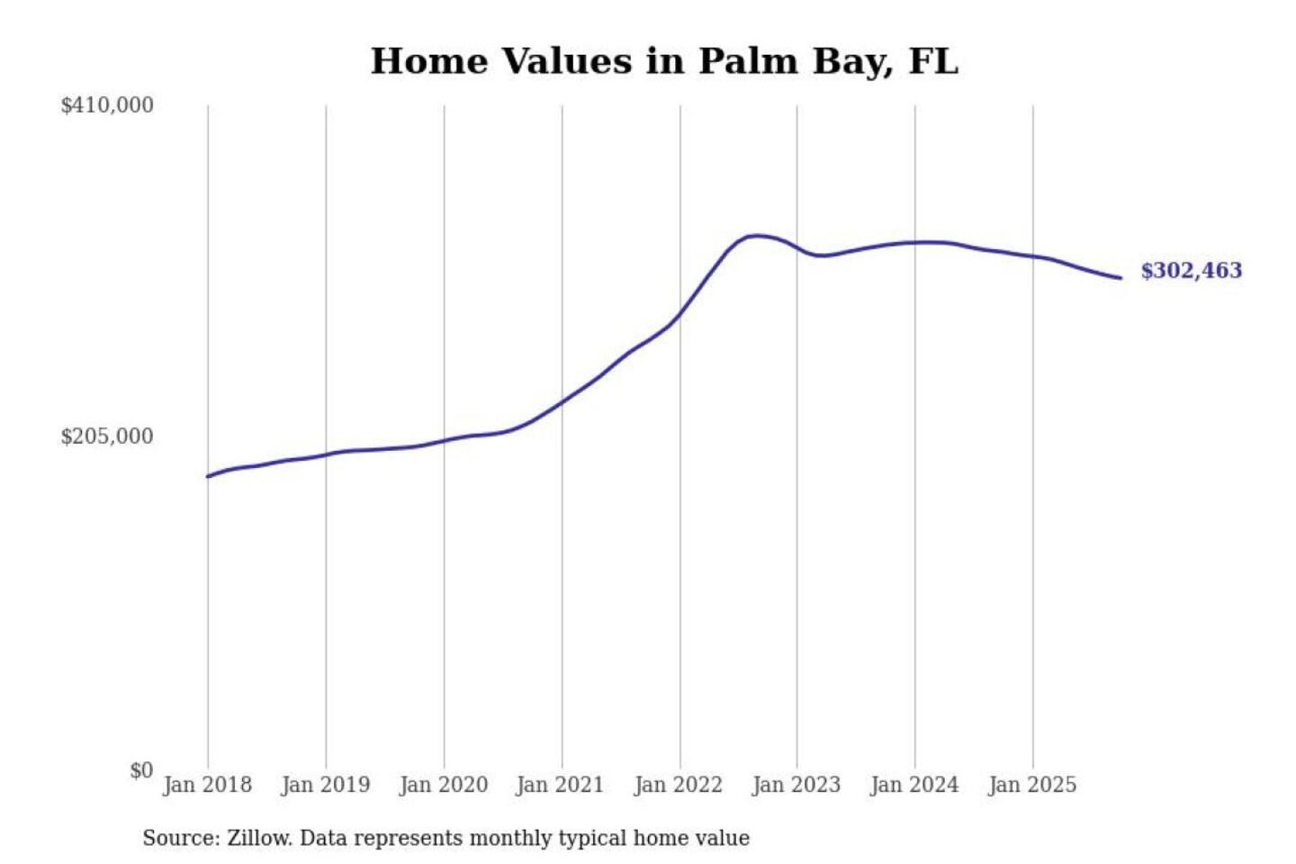Stacker compiled a list of cities with the most expensive homes in the Palm Bay metro area using data from Zillow. Charts show the monthly typical home value since January 2018. All 19 cities and towns with data available were included in the list.