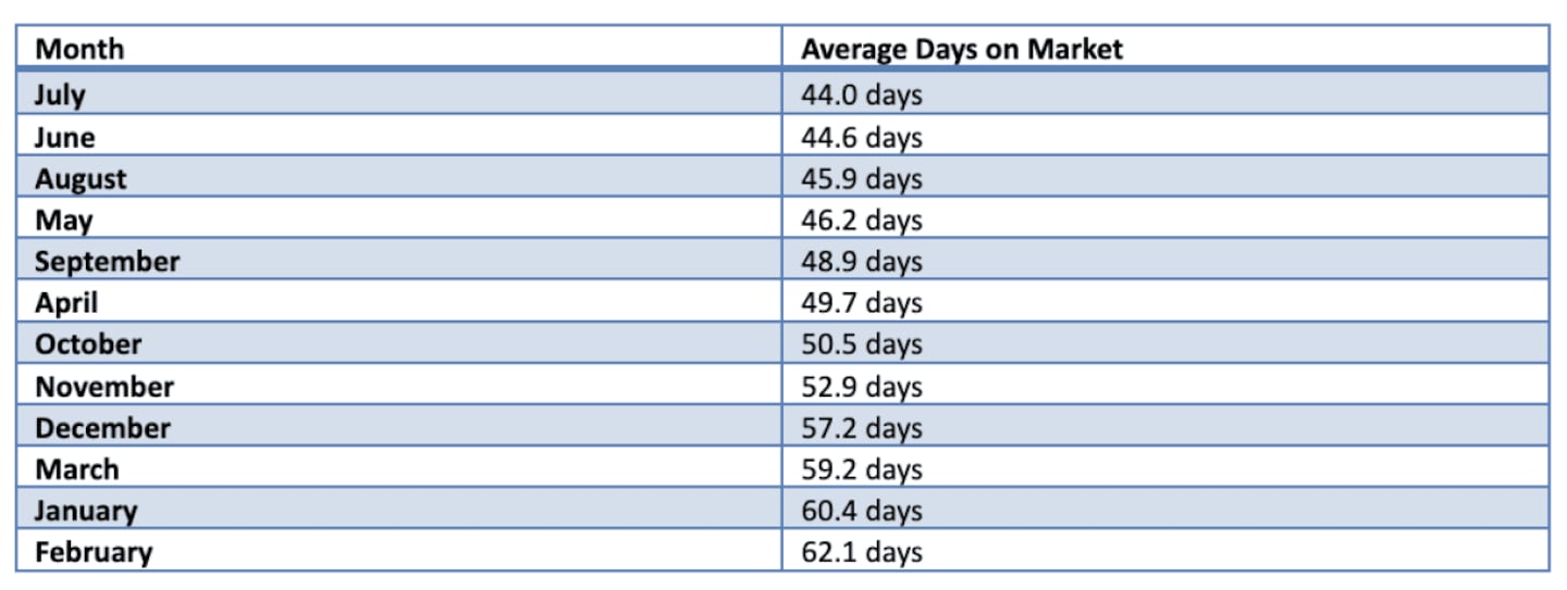 Homes that closed in summer (May through August) spent an average of 45.2 days on market. Homes closing in winter (December through February) spent 59.9 days. That is a 33% penalty for winter sellers.