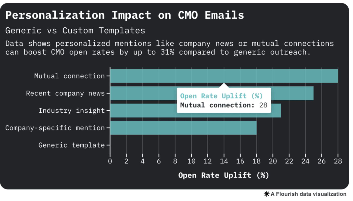 Generic "transform your marketing" pitches get deleted instantly. But mention specific products, recent campaigns, or actual metrics? That's when CMOs pay attention — and the data proves exactly which language triggers responses.