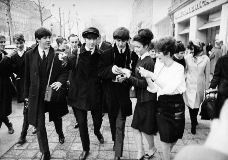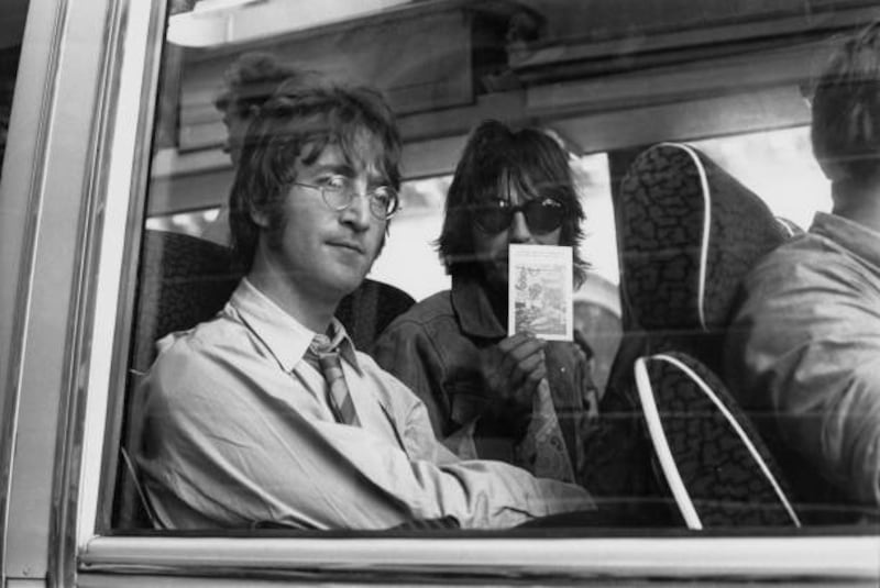 Remembering John Lennon The other members of British rock group the Beatles congratulate John Lennon on passing his driving test, 16th February 1965. From left to right, George Harrison, John Lennon, Paul McCartney and Ringo Starr. (Photo by Keystone/Hulton Archive/Getty Images) (Keystone/Getty Images)