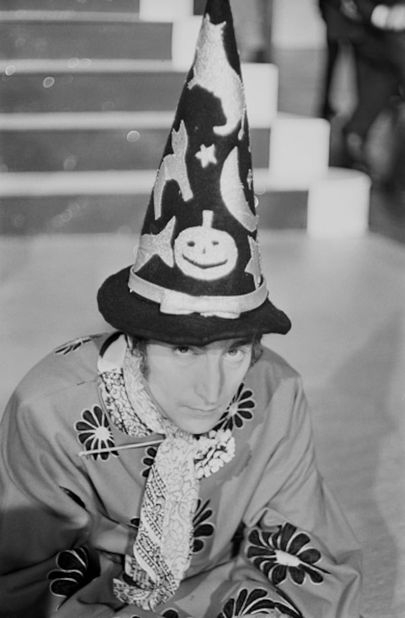 Remembering John Lennon John Lennon (1940-1980), guitarist and singer with the Beatles, pictured wearing a wizard style hat during the final day of filming of 'Magical Mystery Tour' at West Malling Air Station in Kent on 24th September 1967. (Photo by Borrison/Daily Express/Hulton Archive/Getty Images) (Matt Green/Getty Images)