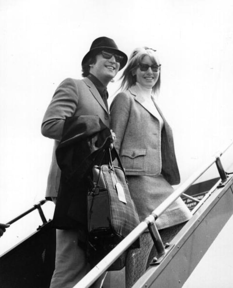 Remembering John Lennon 20th May 1965: Beatle John Lennon and his wife Cynthia boarding an aeroplane at London Airport. (Photo by Evening Standard/Getty Images) (Evening Standard/Getty Images)