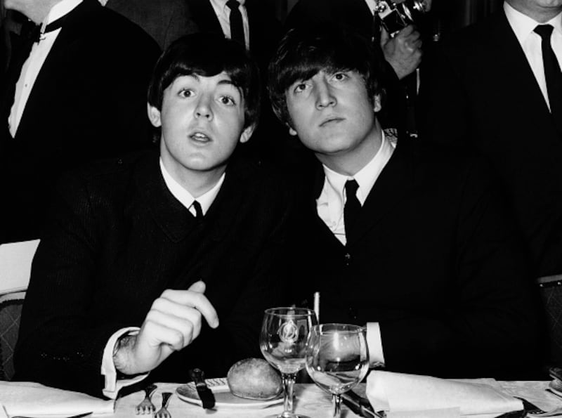 Remembering John Lennon 13th September 1964: Beatles Paul McCartney (left) and John Lennon (1940 - 1980) at the Variety Club Showbusiness Awards held at the Dorchester, London. (Photo by William Vanderson/Fox Photos/Getty Images) (William Vanderson/Getty Images)