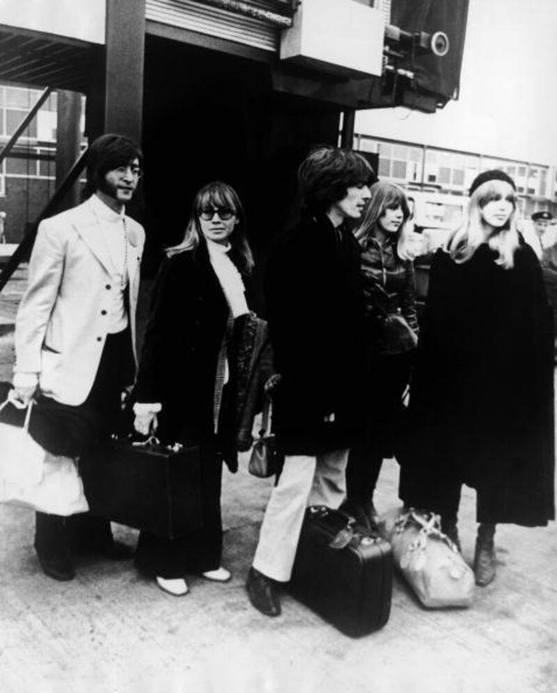 Remembering John Lennon Beatles John Lennon (1940 - 1980) and George Harrison (1943 - 2001) leave Heathrow Airport for two months' transcendental meditation at Rishikesh in the Himalayas with the Maharishi Mahesh Yogi, 15th February 1968. Accompanying them are their wives Cynthia and Patti, and Patti's younger sister Jenny. The other two Beatles are due to join them later. (Photo by Keystone/Hulton Archive/Getty Images) (Keystone/Getty Images)