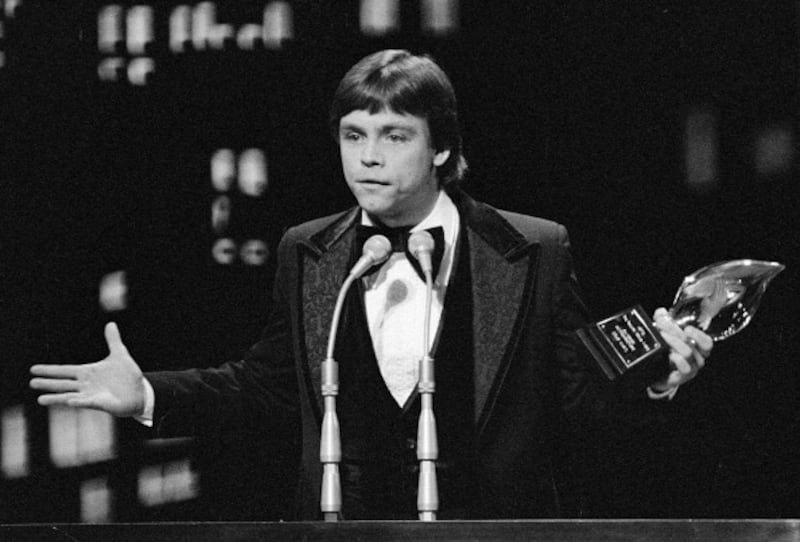 Mark Hamill receiving the Favorite Motion Picture award for "Star Wars" on the 1978 People's Choice Awards show. Image dated February 20, 1978. (Photo by CBS via Getty Images)