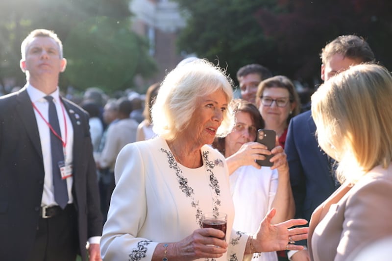 King Charles III And Queen Camilla Begin State Visit To The United States Of America WASHINGTON, DC - APRIL 27: Queen Camilla attends a Garden Party on day one of her State visit to the United States of America with King Charles III on April 27, 2026 at the White House in Washington, DC. King Charles III and Queen Camilla will visit the nation's capital, New York City, and Virginia during the trip arranged to celebrate the 250th anniversary of US independence. (Photo by Ian Volger - Pool/Getty Images) (Pool/Getty Images)