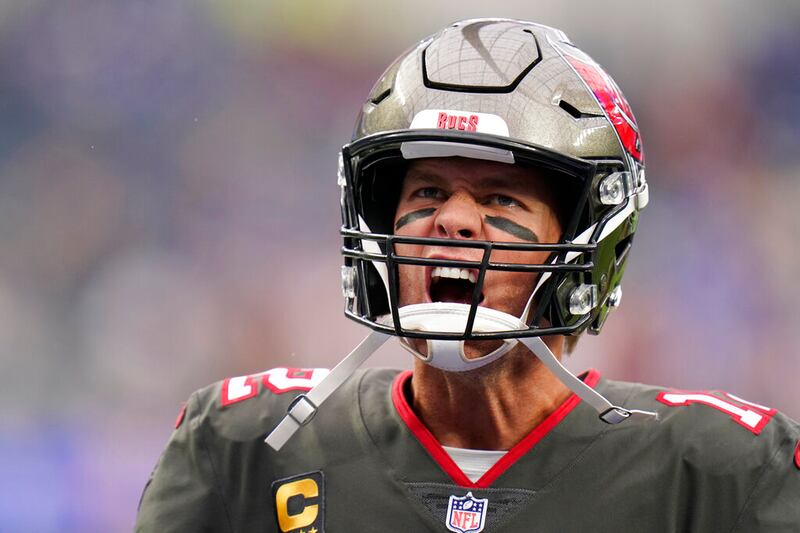 Tom Brady Tampa Bay Buccaneers quarterback Tom Brady yells as enters the field for warmups before an NFL football game against the Los Angeles Rams Sunday, Sept. 26, 2021, in Inglewood, Calif. (AP Photo/Jae C. Hong) (Jae C. Hong/AP)