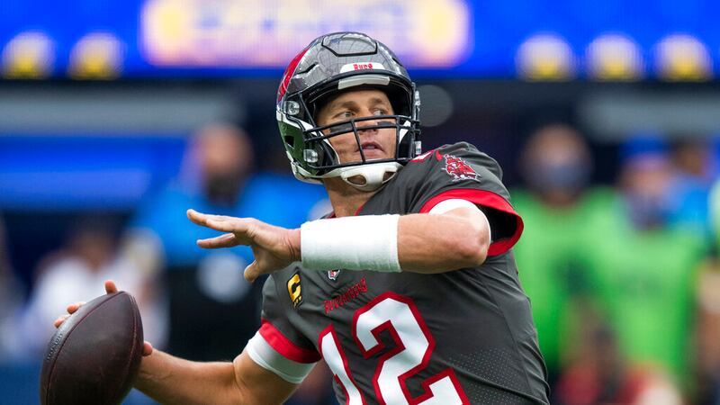 Tom Brady Tampa Bay Buccaneers quarterback Tom Brady (12) throws a pass during an NFL football game against the Los Angeles Rams Sunday, Sept. 26, 2021, in Inglewood, Calif. (AP Photo/Kyusung Gong) (Kyusung Gong/AP)